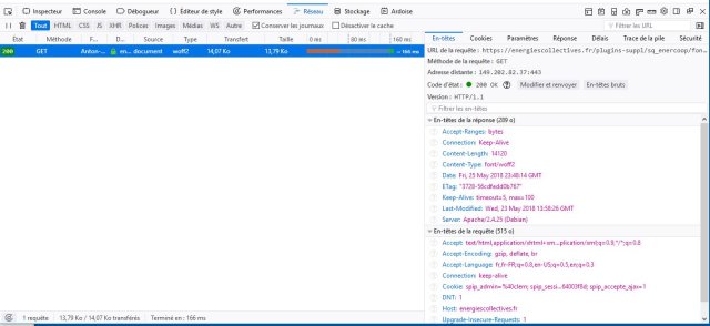 La consultation de ces en-têtes de réponse est possible avec les outils de développement intégrés dans Firefox, onglet "Réseau"
