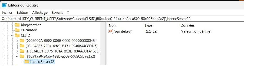 InprocServer32 - validez avec "Entrée" : vous devriez avoir une valeur par défaut vide dedans :