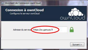 Le client de synchronisation (lancé à la fin de l’installation) vous demande d’abord l’URL du serveur