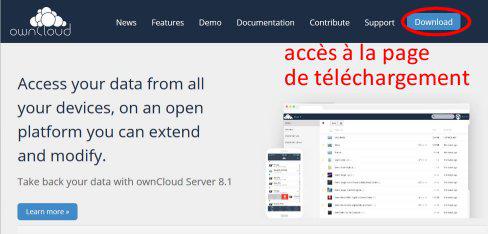 A l’aide votre navigateur web favori, connectez vous sur le site de NextCloud (https://nextcloud.com/) et allez à la page « Download »