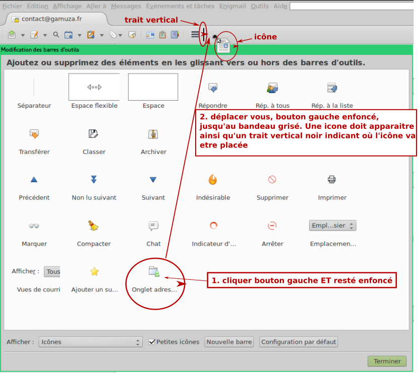Comment ajouter l’icône une fois le module addressbooktab installé et activé ?
