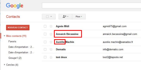 - dans le volet des dossiers/groupes de contacts, sélectionner le groupe "Date d’importation..."